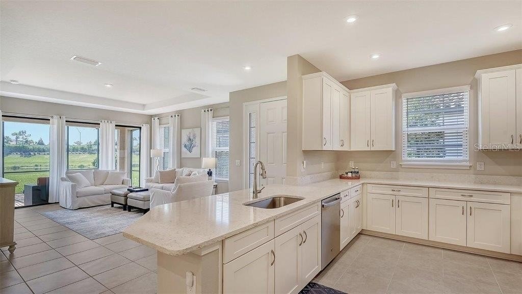 Set on a non-golf premium pond view lot, this Ibis villa offers 2 bedrooms, 2 bathrooms, and a flex room suitable for an office or den. An extended screened lanai provides additional outdoor living space with water views. Open concept layout with kitchen, dining, and great room. Features include quartz countertops, tray ceilings, a laundry room with added cabinetry, and a 2 car garage. Residents of Esplanade at Azario enjoy access to resort style amenities: 18-hole championship golf course (optional membership), resort pool, fitness center, spa, tennis, pickleball, bocce, walking trails, and dog parks. Culinary center with restaurants, cafe, cooking classes, wine tastings, clubhouse, and pro shop.